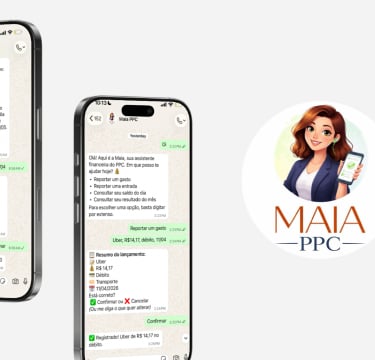 A MaIA é sua assistente financeira pessoal. Você manda uma mensagem com o gasto e ela registra automaticamente no seu sistema. Ela reporta entradas, mostra seu saldo do dia e o resultado do mês — tudo na palma da sua mão.